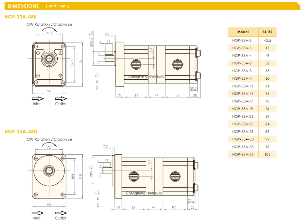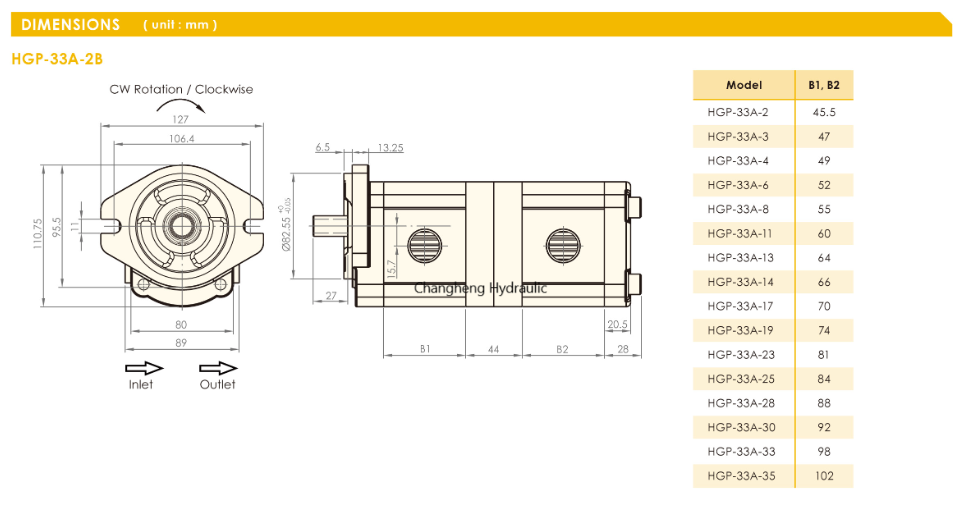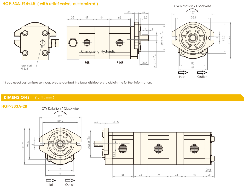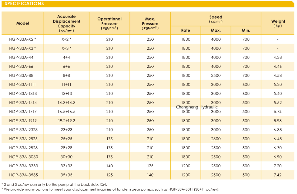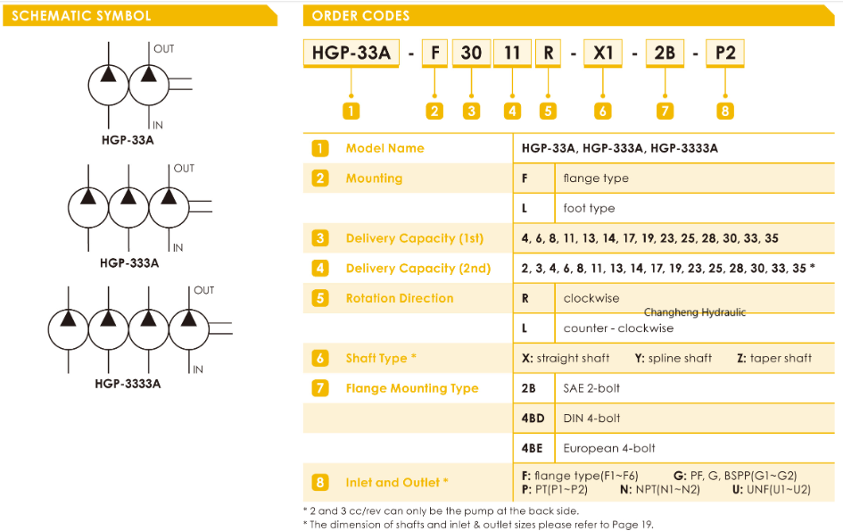 This series double gear pumps other models: HGP-33A-F22R-X-2B HGP-33A-F33R-X-2B HGP-33A-F44R-X-2B